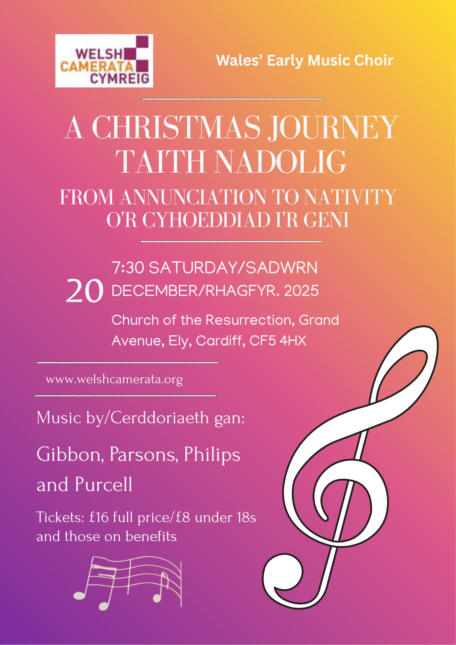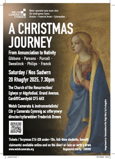 There's much fine amateur choral singing in Wales and the members of the Welsh Camerata are proud to be part of that tradition. We are a small choir of around 25 singers and what makes us distinct is that we specialise in the authentic performance of early music - that composed in the eighteenth century and previous centuries (with the occasional, well-informed foray into later periods). In this endeavour, we were fortunate to have as our first director Andrew Wilson-Dickson, formerly head of Early Music at the Royal Welsh College of Music and Drama. Performance technique has evolved over the centuries and singing music from earlier periods often requires quite a different approach to the material. Our specialism has led us to discover forgotten masterpieces from an incredibly rich period. Many of our concerts contain pieces quite possibly receiving their first performance in Wales since their composition. We often get the opportunity to perform with early music instrumentalists, including the Welsh Baroque Orchestra. In 2016 we gave the first performance of a realisation by our director Andrew Wilson-Dickson of Bach's lost St Mark Passion to much critical acclaim. The realisation has been published by Canasg. With the appointment of our new director, Frederick Brown , from September 2024 we look forward to an exciting new era in the life of the choir.