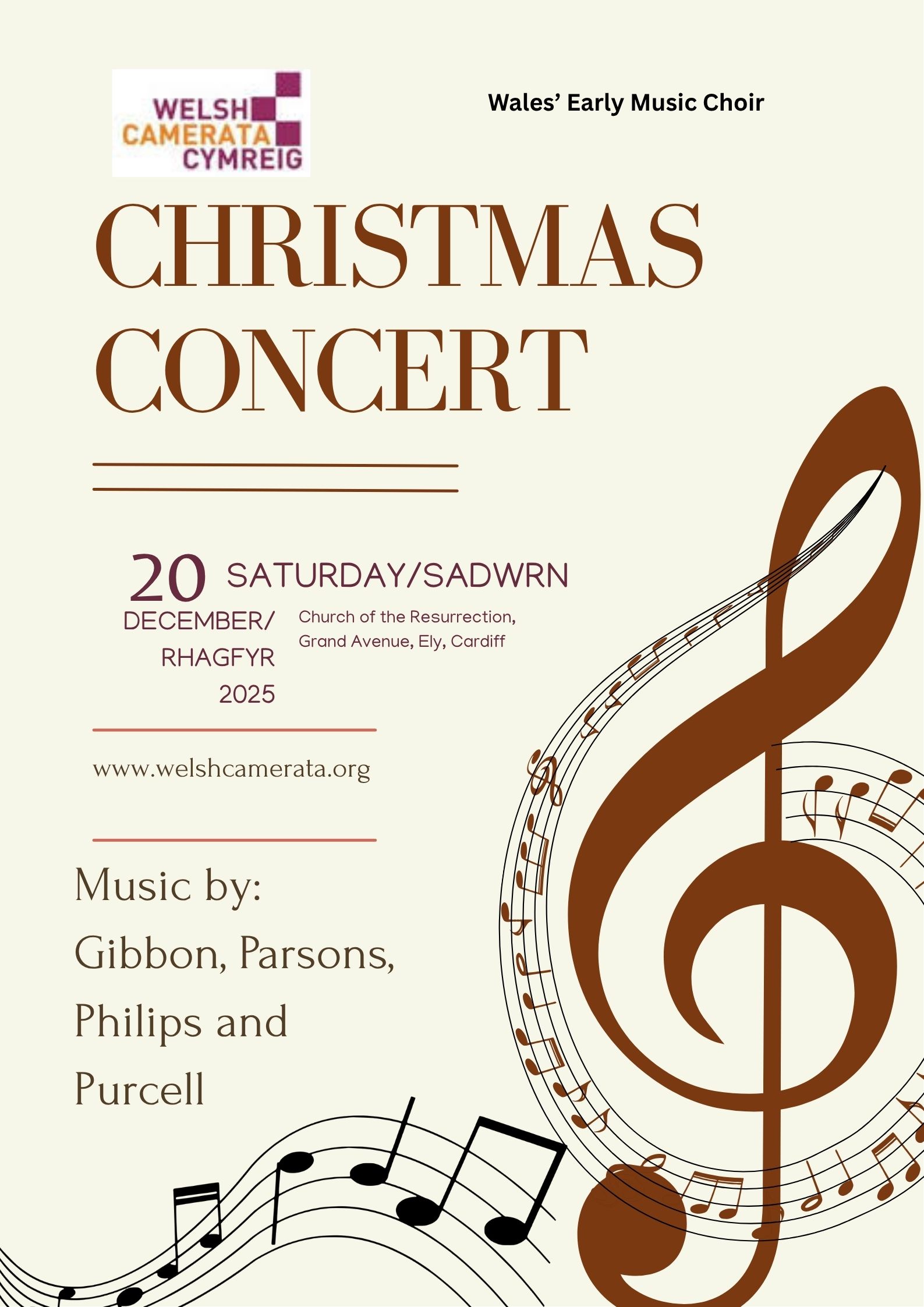 There's much fine amateur choral singing in Wales and the members of the Welsh Camerata are proud to be part of that tradition. We are a small choir of around 25 singers and what makes us distinct is that we specialise in the authentic performance of early music - that composed in the eighteenth century and previous centuries (with the occasional, well-informed foray into later periods). In this endeavour, we were fortunate to have as our first director Andrew Wilson-Dickson, formerly head of Early Music at the Royal Welsh College of Music and Drama. Performance technique has evolved over the centuries and singing music from earlier periods often requires quite a different approach to the material. Our specialism has led us to discover forgotten masterpieces from an incredibly rich period. Many of our concerts contain pieces quite possibly receiving their first performance in Wales since their composition. We often get the opportunity to perform with early music instrumentalists, including the Welsh Baroque Orchestra. In 2016 we gave the first performance of a realisation by our director Andrew Wilson-Dickson of Bach's lost St Mark Passion to much critical acclaim. The realisation has been published by Canasg. With the appointment of our new director, Frederick Brown , from September 2024 we look forward to an exciting new era in the life of the choir.